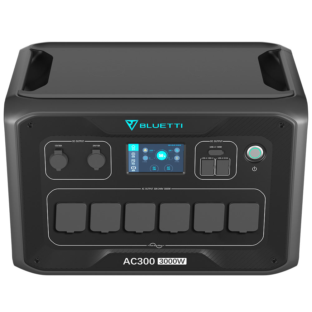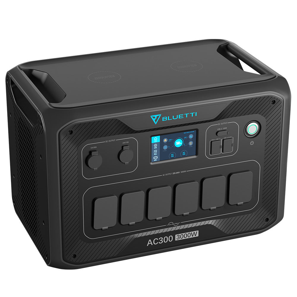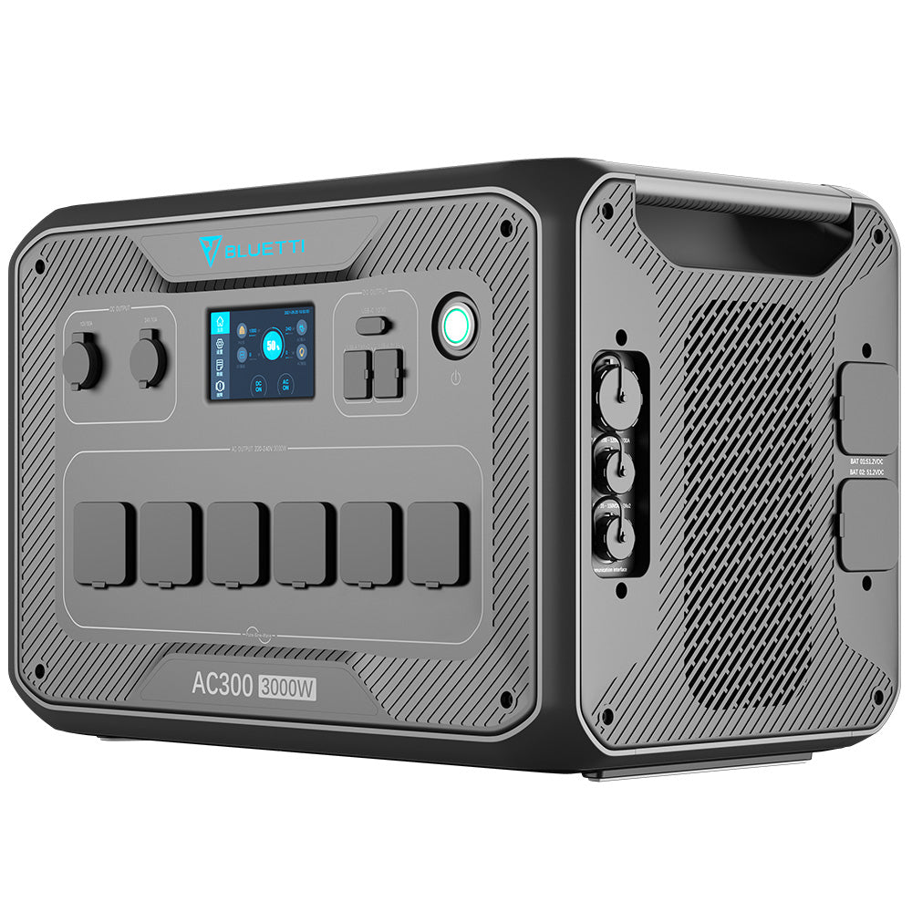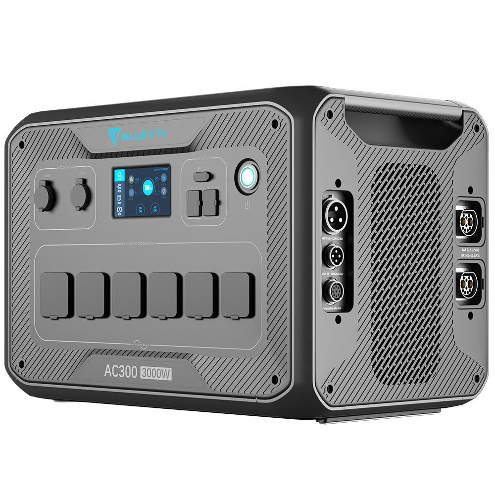 Mit der AC300 präsentiert Bluetti die einzige Version im Sortiment der mobilen Powerstations, die nur in Kombination mit mindestens einem B300 Batteriemodul funktioniert. Mit seinen zahlreichen Anschluss- und Auflademöglichkeiten ist dieses tragbare Kraftwerk ein vielseitig einsetzbarer Allrounder für zu Hause, als Backup bei Stromausfall oder für Camping- und Outdoor-Abenteuer.